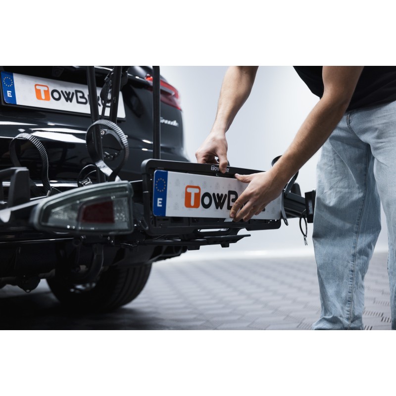 Ideal para vehículos con maleteros grandes, por ejemplo, Volkswagen T5, T6 y furgonetas, ya que es abatible hasta permitir abrir el portón.